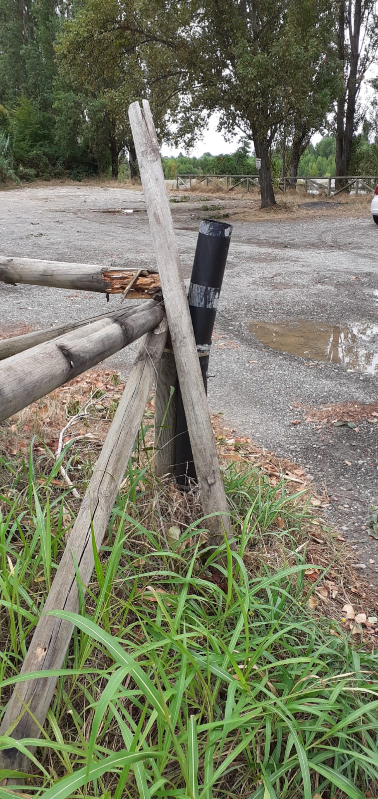 Descrizione del problema riscontrato E' stata divelta, nell'ingresso del parcheggio sterrato, la barriera che impedisce l'accesso ai camper/caravan. Segnalazione pervenuta anche da CFS a prot. n° 1413 del 22.8.22